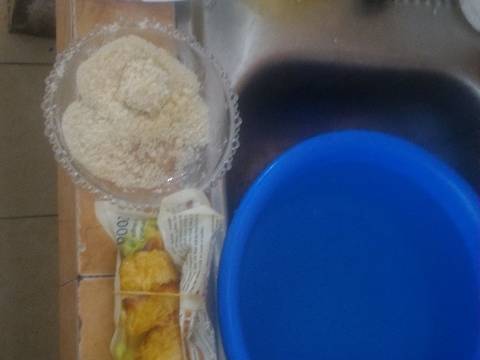 Bulat bulat dan pipihkan seperti nugget nugget pada umumnya